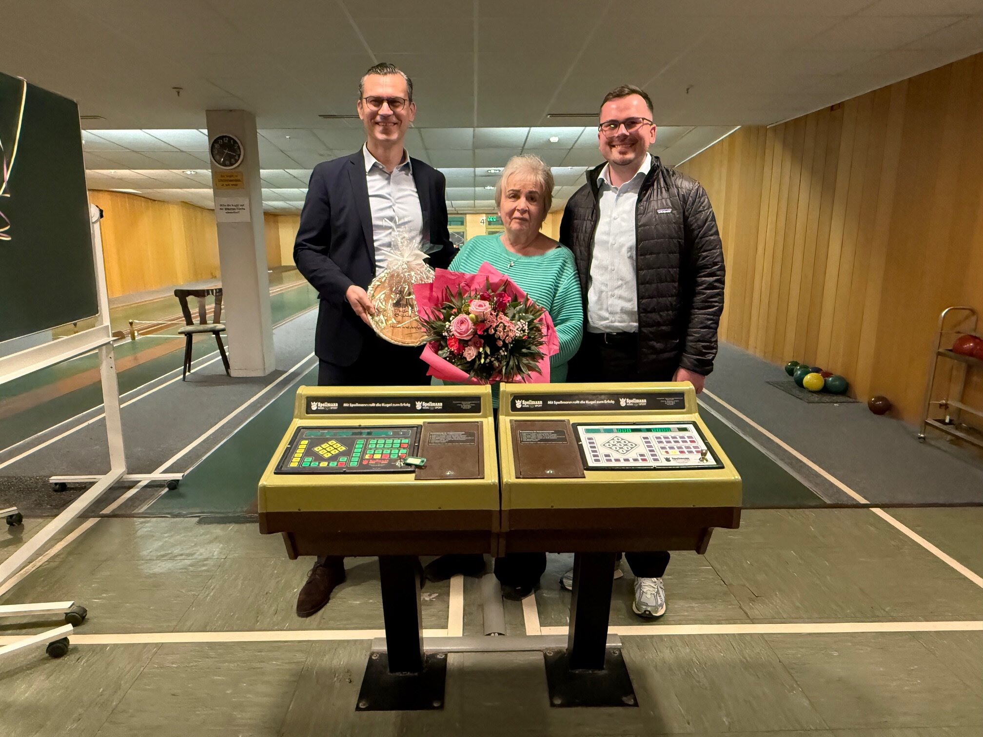 Vor 20 Jahren, am 1. März 2006, übernahm Anita Rigitano die Keglerklause in der Hofheimer Stadthalle. Für die Jubilarin „ein Sechser im Lotto!“ Bürgermeister Wilhelm Schultze gratulierte gemeinsam mit Norman Diehl, als Geschäftsführer der Hallen- und Parkhaus GmbH, der „guten Seele“ der Kegelbahn, Anita Rigitano, mit einem Blumenstrauß und einem Präsent zum 20jährigen Jubiläum.