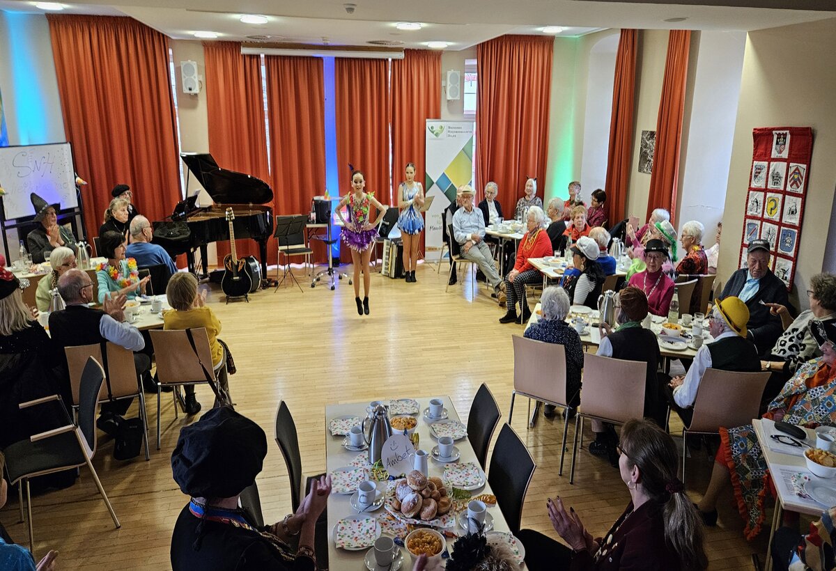 Den schwungvollen Auftakt gestaltete die Ambet mit ihrem Gefolge. Der Tanz der Jüngsten sowie eine augenzwinkernd eine „weihnachtliche“ Büttenrede sorgten für ausgelassene Stimmung. Weitere pointierte Beiträge in der Bütt kamen von Therese Hummel, Klaus Kirchner, Irmgard Schwenke und Eva Dörr. Mit Wortwitz, Charme und Alltagserfahrungen aus dem Leben älterer Menschen und ihrer Vergangenheit schufen sie zahlreiche heitere Momente.
