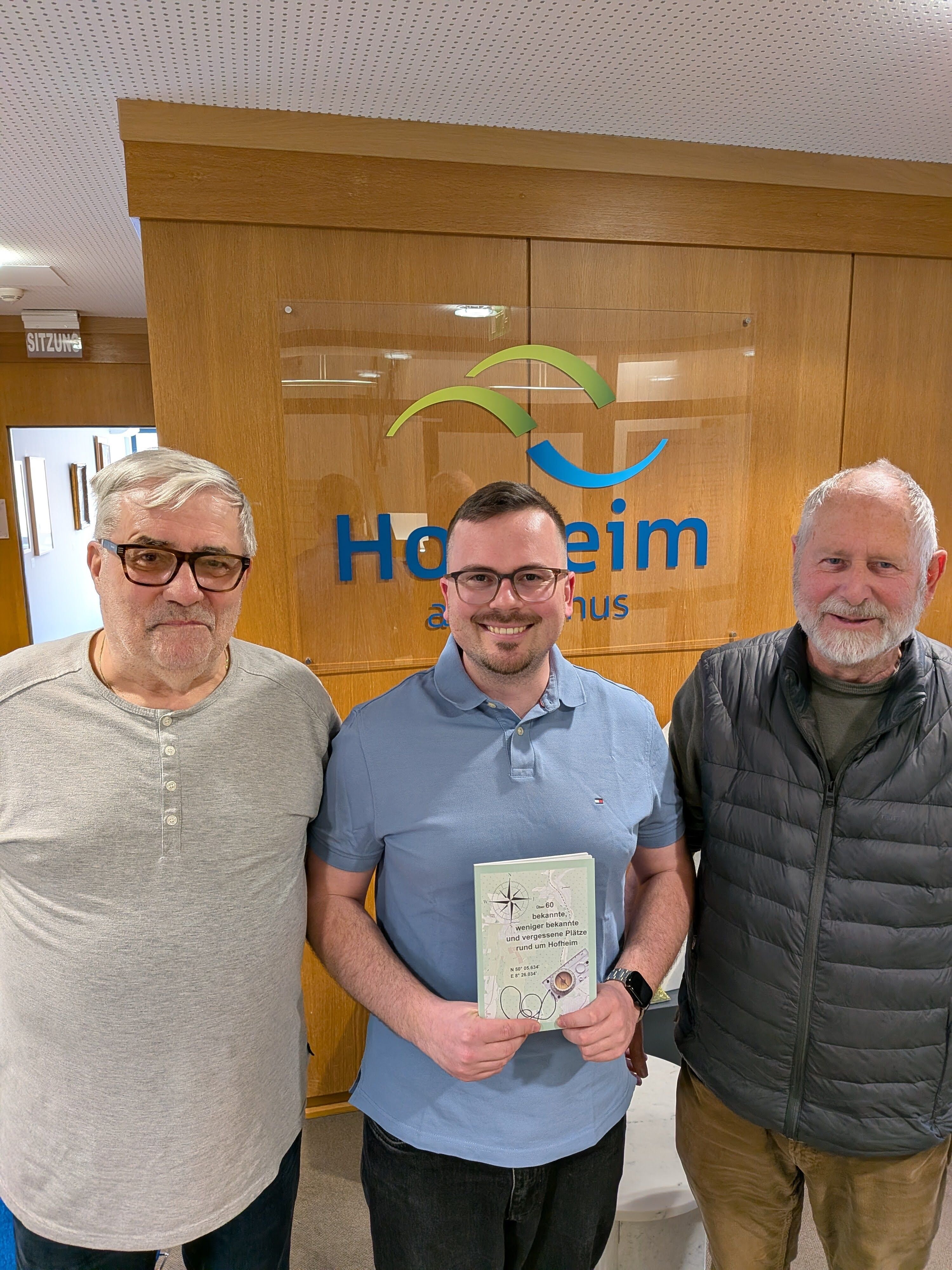 Das Autoren-Duo Dietrich Bender und Peter Kolar hat Bürgermeister Wilhelm Schultze die neue Ausgabe ihres Buchs „Über 60 bekannte, weniger bekannte und vergessene Plätze rund um Hofheim“ überreicht. Es ist seit dem ersten Erscheinen vor knapp drei Jahren bereits der siebte Nachdruck. Der Grund: So viele Hofheimerinnen und Hofheimer haben sich bei dem Autorenteam gemeldet und sie auf immer neue Plätze aufmerksam gemacht.