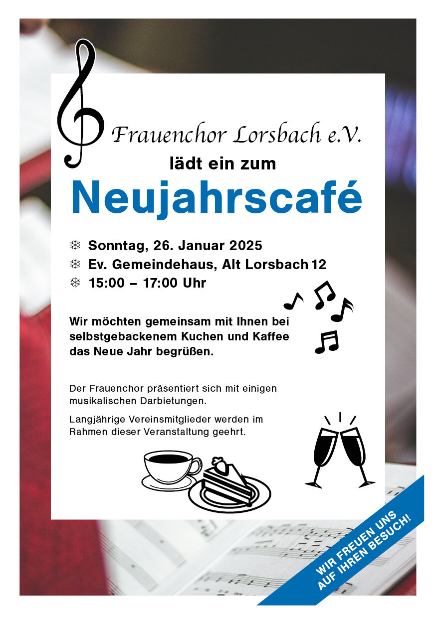 Wir möchten gemeinsam mit Ihnen bei selbstgebackenem Kuchen und Kaffee das Neue Jahr begrüßen.