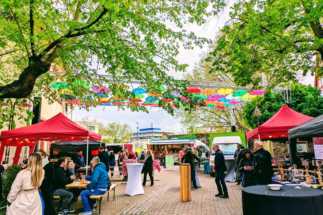 Italienische Backwaren, edle Feinkost, leckeres Bier und guter Wein – der Feierabendmarkt hat auch im Jahr 2026 einiges zu bieten. Außerdem gibt es eine Premiere: Erstmals ist Savas Aksünger mit veganen Speisen und Falafel dabei. Der beliebte Markt startet am 23. April in seine vierte Saison. Wie gewohnt bietet der Ludwig-Meidner-Platz das perfekte Ambiente. Dort laden die Gastgeberinnen und Gastgeber an elf Terminen mit ihren Ständen bis zum 16. Juli zum Verweilen und Genießen ein. Immer donnerstags von 16 bis 22 Uhr ist dies erstmals ohne Sommerpause möglich. Nur an den Feiertagen Christi Himmelfahrt (14. Mai) und Fronleichnam (4. Juni) wird es keinen Markt geben.
