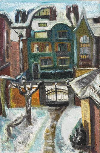 Blick von der Städelschule im Winter (Eingang Dürerstraße), 1928